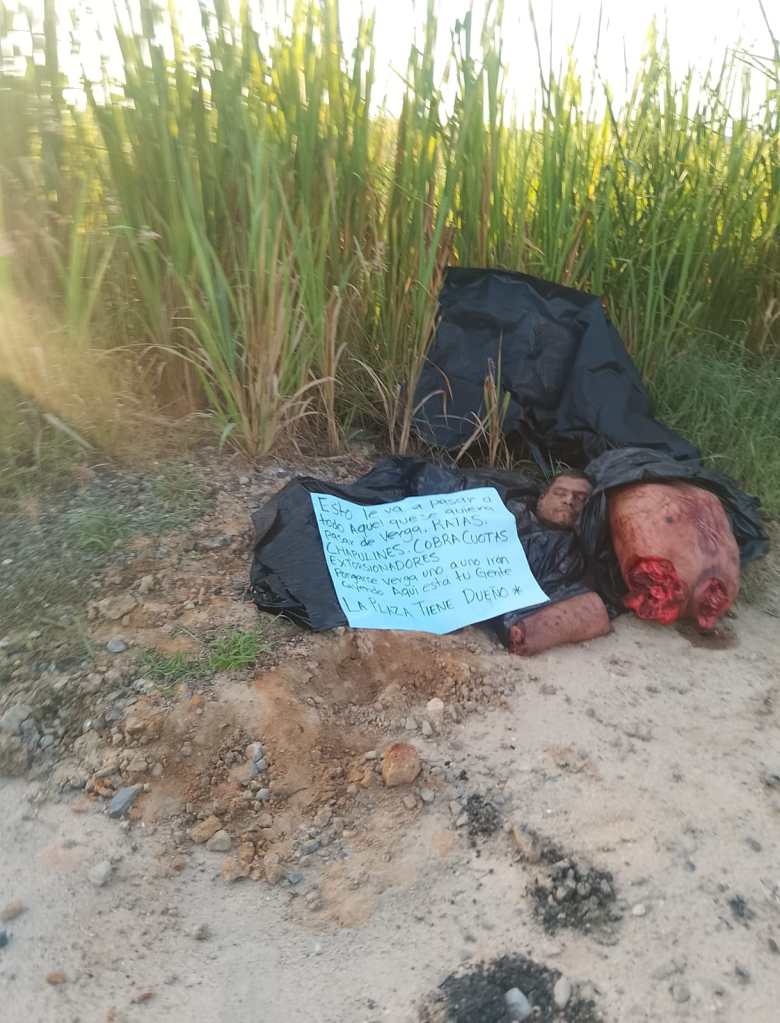 Hallan cuerpo desmembrado con narcomensaje en carretera Coatza–Villa