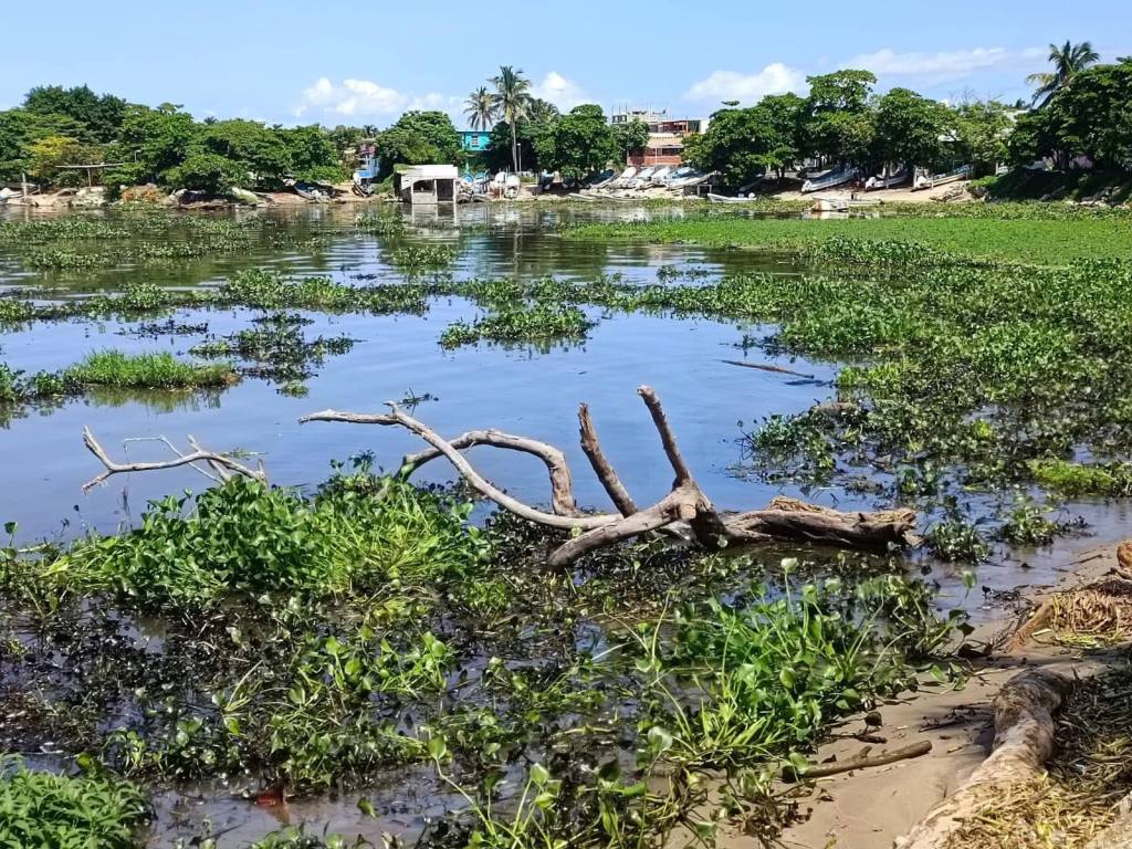 Pescadores y habitantes de Villa Allende urgen a las autoridades ambientales intervenir para limpiar y retirar el lirio acuático que ha recalado a lo largo de la ribera del río Coatzacoalcos.