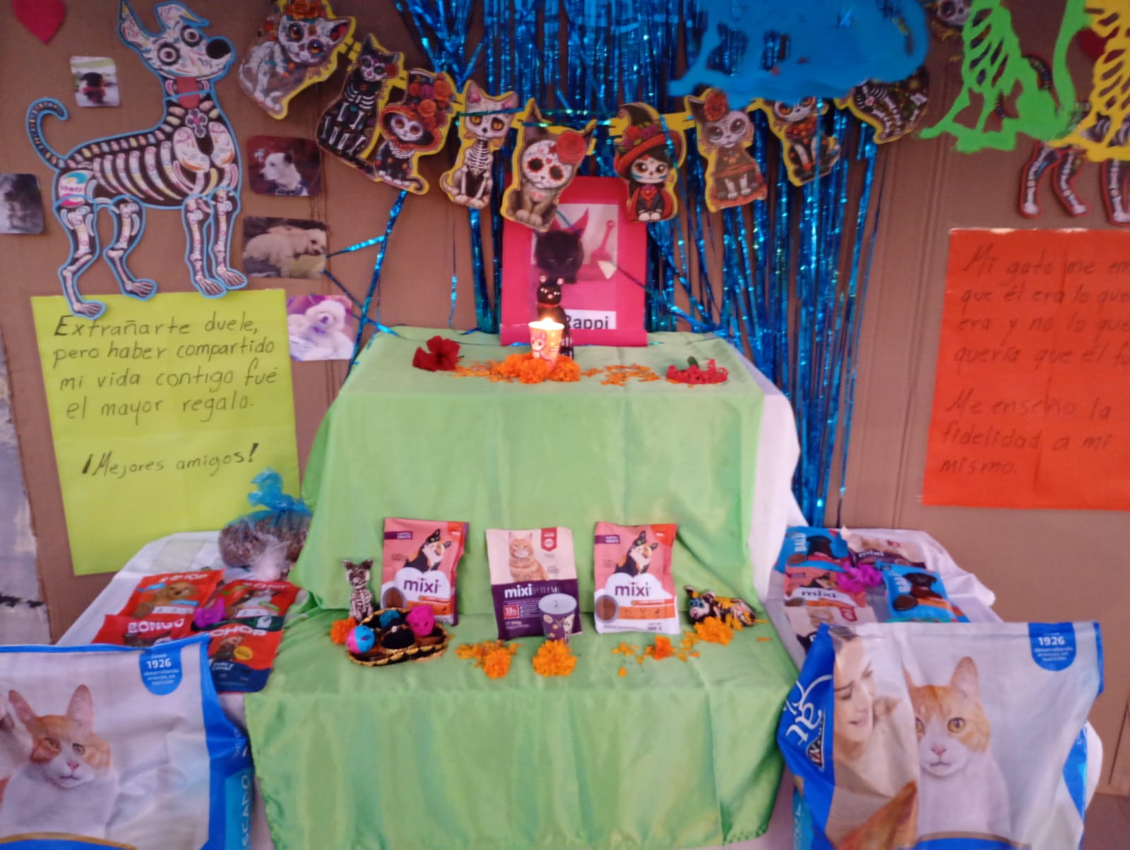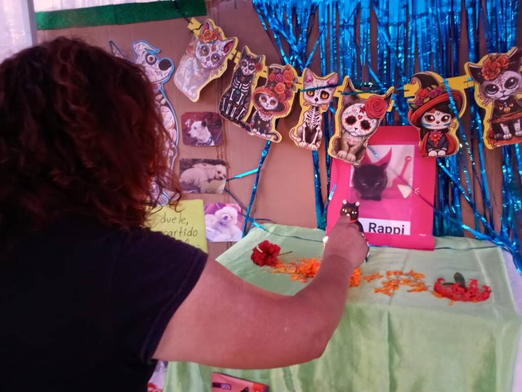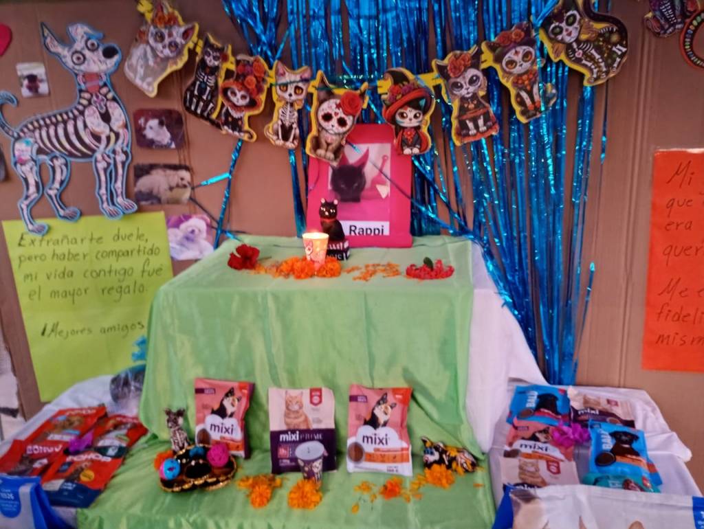 Isis Guillén, quien desde 2005 realiza activismo por los derechos animales y mantiene un albergue para 30 gatitos callejeros, desde hace 12 años, explicó que cada día de estas fechas monta este altar para honrar a los perros y gatos que fueron parte de las familias, evocando su recuerdo con flores y croquetas, y recibiendo ayuda ciudadana para alimentar y cuidar a los rescatados.