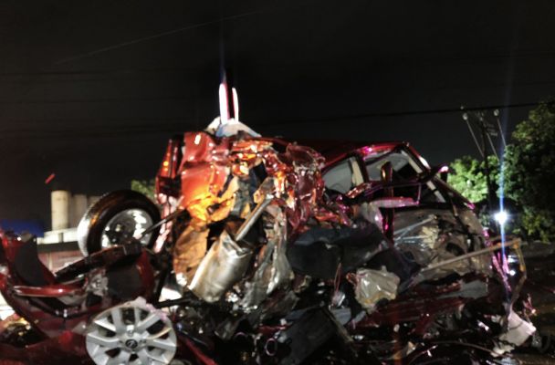 Dos profesionistas escaparon por poco de una tragedia durante la madrugada de este lunes, cuando un tren impactó y destrozó su vehículo en un cruce ferroviario de la carretera federal Veracruz-Xalapa, cerca de Tamsa en la colonia Valente Díaz.