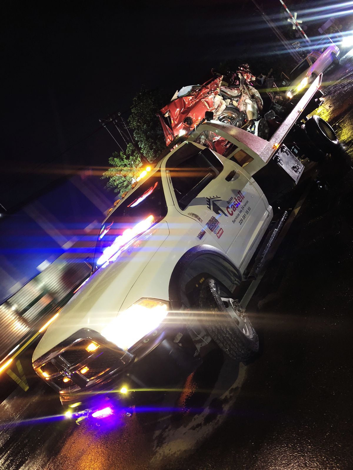 Un Nissan Versa rojo, que circulaba de Santa Fe hacia el puerto de Veracruz con dos ocupantes de unos 30 años, se detuvo sobre las vías por una aparente falla mecánica.