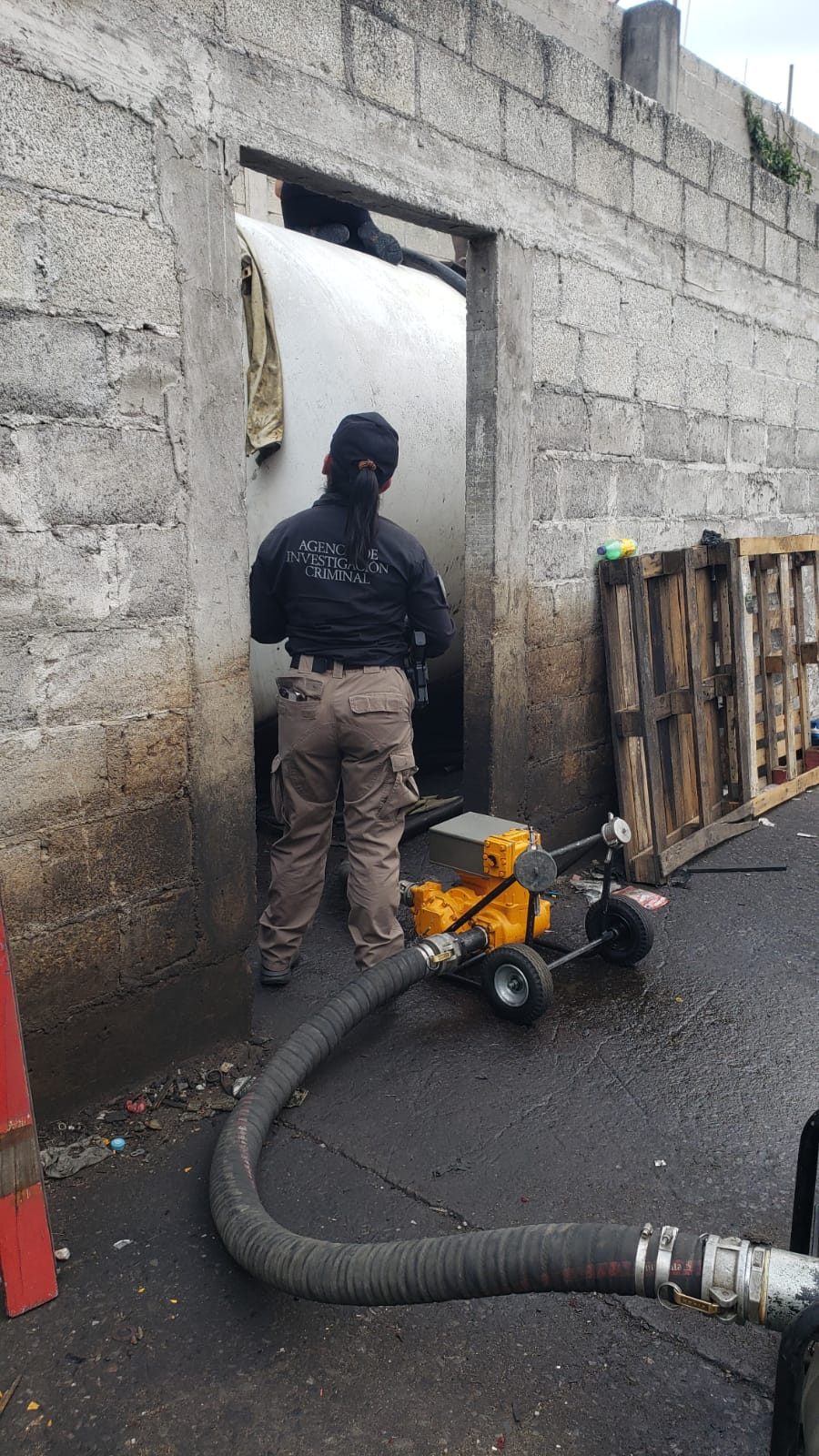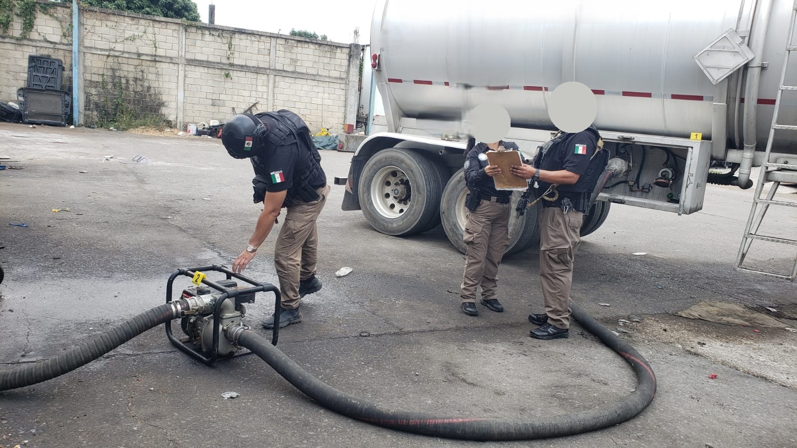 El operativo lo realizaron elementos de la Policía Federal Ministerial (PFM), en coordinación con peritos del Centro Federal Pericial Forense (CFPF), ambos de la Agencia de Investigación Criminal (AIC), quienes aseguraron el hidrocarburo referido, dos contenedores cilíndricos metálicos, dos semirremolques tipo pipa, dos semirremolques tipo jaula, dos semirremolques con caja seca y un semirremolque tipo plana.