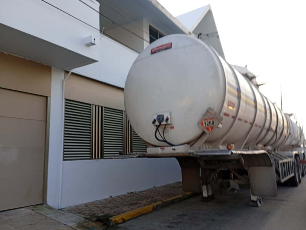 Entre el equipo decomisado destaca un tractocamión color rojo con placas federales 66-2T-7J, de doble remolque y equipado con dos cisternas de auto-tanque.