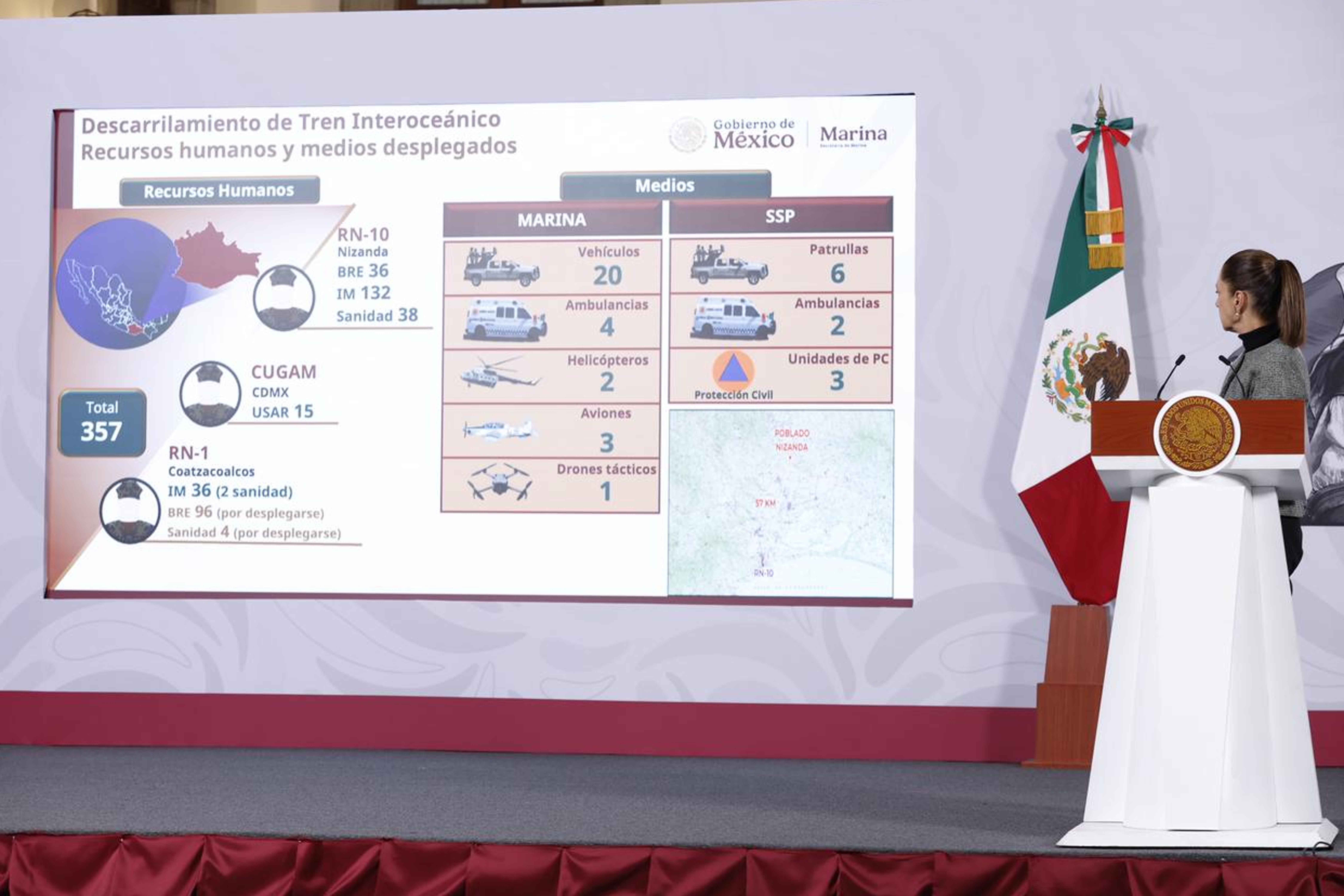 El almirante Raymundo Pedro Morales Ángeles, titular de la Secretaría De Marina (Semar), reportó que de las 13 personas fallecidas en el descarrilamiento del Tren Interoceánico, 12 han sido localizadas y una continúa en labores de búsqueda.