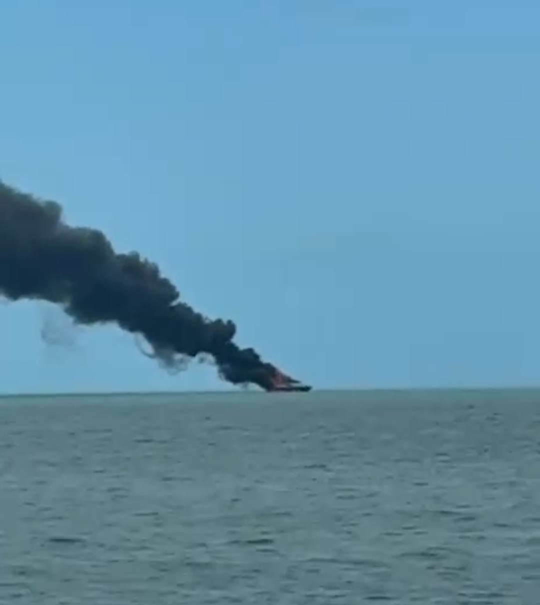 Autoridades mantuvieron vigilancia en el área donde ocurrió el incendio de la embarcación frente a Progreso, con el fin de descartar derrames de combustible o daños adicionales que afecten la navegación o la zona costera.