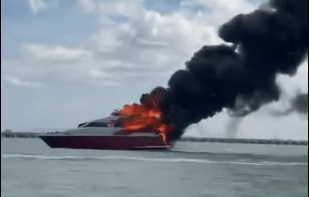 Se incendia yate frente al puerto de Progreso, Yucatán