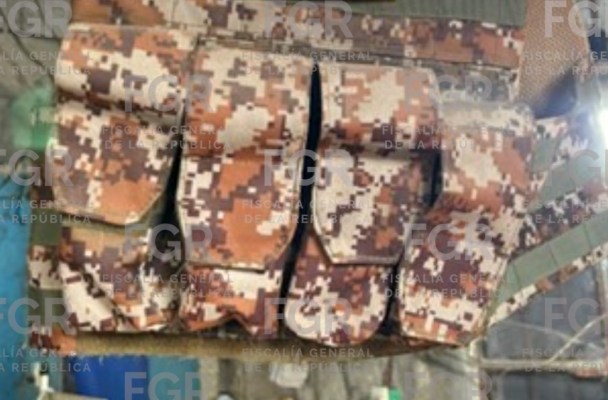 Las autoridades que conforman el Gabinete de Seguridad del Gobierno de México aseguraron seis máquinas de coser tipo industrial, una máquina cortadora de tela, seis chalecos verdes camuflados, seis chalecos color negro, algunos con insignias de la Policía Estatal, un chaleco verde con café camuflado, un rollo de tela color café con verde y rojo camuflado, un tramo de tela bordado con el nombre de una institución de las Fuerzas Armadas de México.