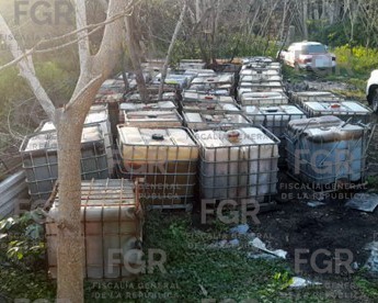 En el lugar, elementos de la Policía Federal Ministerial (PFM) aseguraron aproximadamente 29 mil 500 litros de hidrocarburo contenido en 38 contenedores de plástico con rejilla metálica, cinco contendores de plástico y un vehículo.