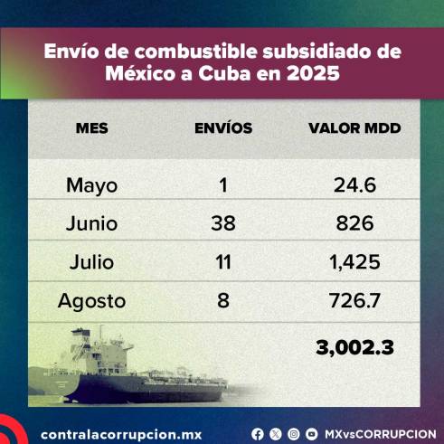 Desde 2023, México mantuvo envíos regulares de petróleo a Cuba ante la caída de los suministros venezolanos, con un promedio mensual de 20 mil barriles diarios durante el año pasado.