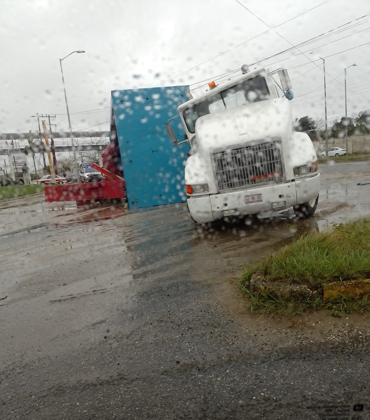 La pesada unidad quedo recostada sobre su costado derecho, obstaculizando el paso de los demás vehículos en dicha arteria vial.