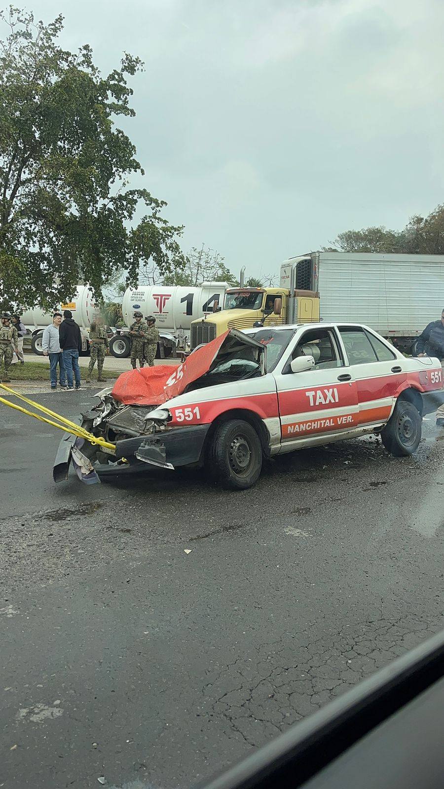 De acuerdo con los primeros reportes, el conductor de un tráiler tipo autotanque habría salido de manera imprudente de la Terminal Marítima de Pajaritos, lo que provocó que un taxi número 551, modelo Nissan Tsuru, del municipio de Nanchital, que se desplazaba con dirección a Coatzacoalcos, se impactara contra la pesada unidad.