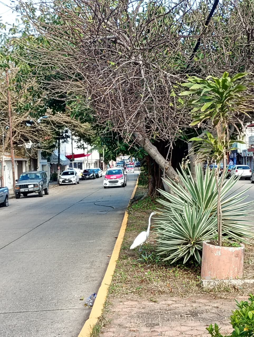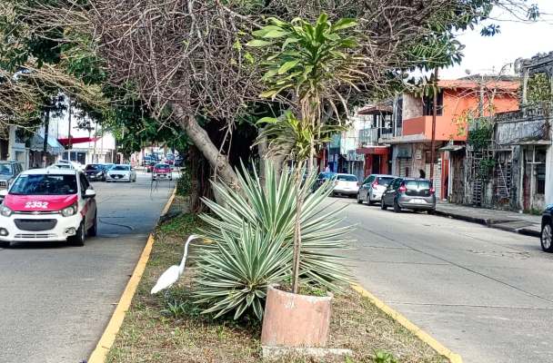 Garza blanca busca refugio en el centro de Coatzacoalcos ante pérdida de hábitat en humedales sureños