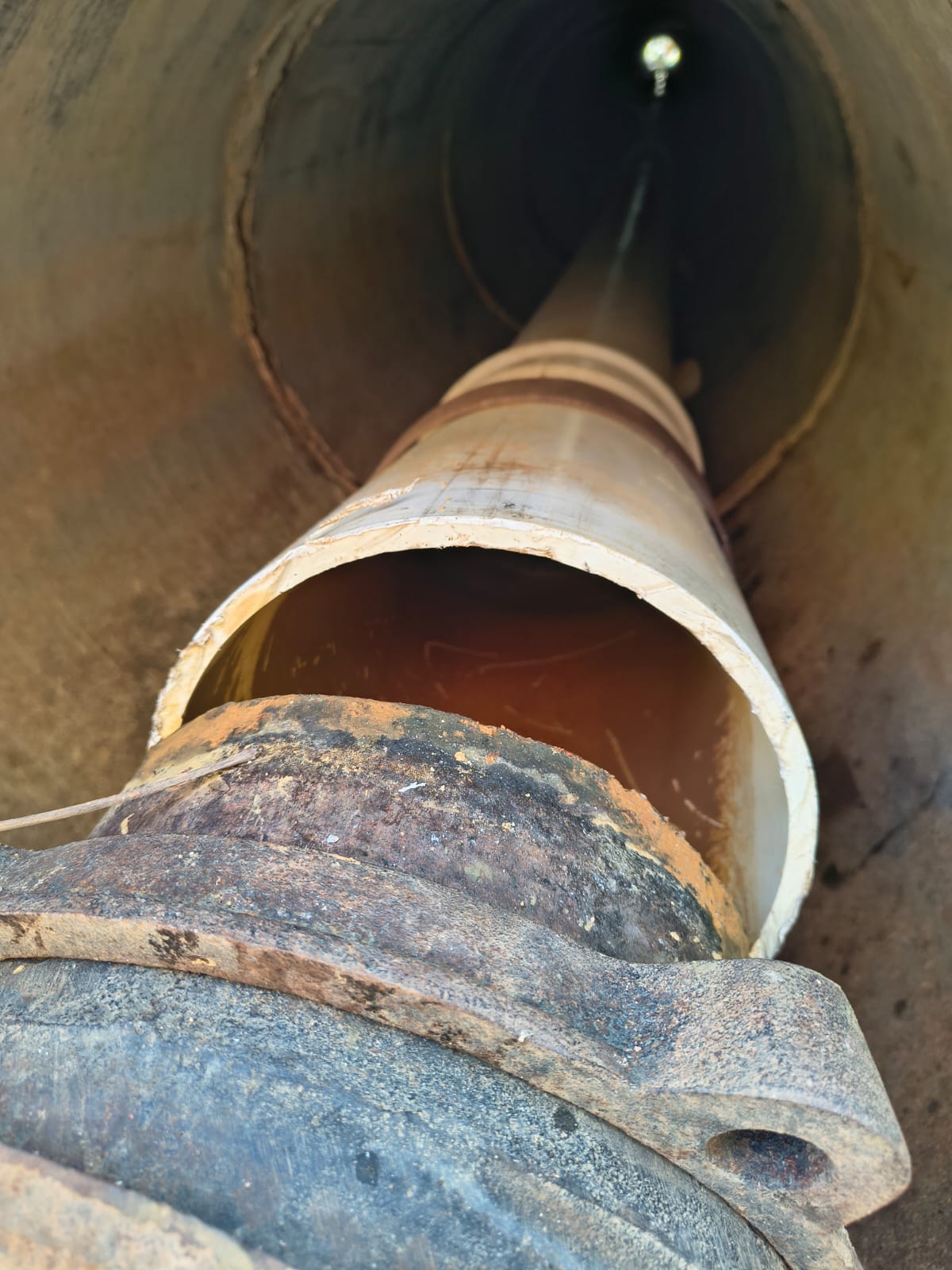Coatzacoalcos, Ver., a 04 de febrero de 2026. La Comisión Municipal de Agua Potable y Saneamiento (CMAS), trabaja a marchas forzadas en la reparación de una fuga detectada en la línea de 10 pulgadas del Pozo 15 de Canticas para restablecer el servicio en más de 20 colonias.