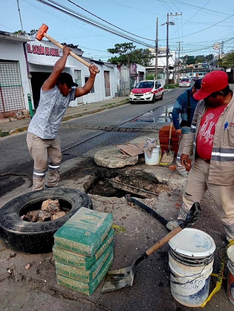 De manera paralela, se iniciaron los trabajos de reparación de drenaje en la calle Allende, entre Transístmica y General Anaya, en la colonia Esfuerzo de los Hermanos del Trabajo, con el objetivo de garantizar un servicio eficiente y seguro.
