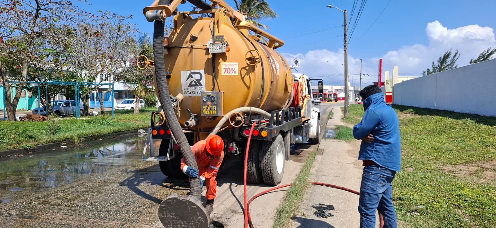 Durante esta jornada intensa de labores, personal operativo atendió los fraccionamientos Santa Martha y Punta del Mar, donde se realizaron trabajos para eliminar azolvamientos y mejorar el funcionamiento de la red de drenaje sanitario, contribuyendo a la prevención de encharcamientos y afectaciones a las familias.