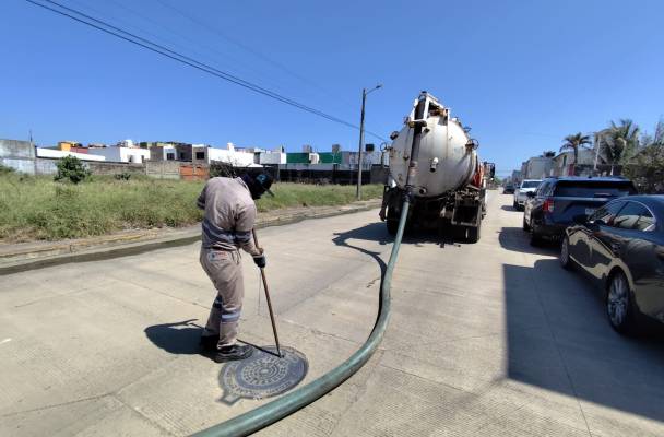 Coatzacoalcos, Ver., a 19 de febrero de 2026. La Comisión Municipal de Agua Potable y Saneamiento (CMAS), mantiene activos los trabajos de desazolve y limpieza profunda de la red de drenaje sanitario en colonias donde por años se han presentado problemas de encharcamientos y brotes de aguas residuales.