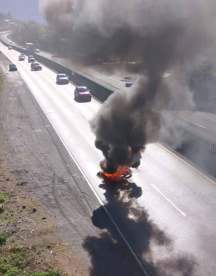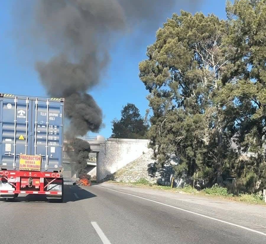 El denso humo negro generado por las llantas en llamas redujo considerablemente la visibilidad y obligó a las autoridades a bloquear el carril de baja velocidad, mientras que el carril de alta velocidad permanece habilitado para el paso vehicular.