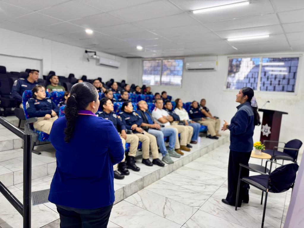 La iniciativa se realizó en coordinación con el Centro Libre para las Mujeres, que impartió una plática de sensibilización y orientación a las y los policías municipales, con el propósito de reforzar la colaboración institucional y mejorar la atención a mujeres en situación de vulnerabilidad.