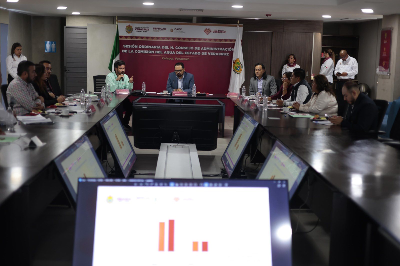 En representación de la gobernadora Rocío Nahle García, presidenta de este órgano colegiado, el secretario de Finanzas y Planeación, Miguel Santiago Reyes Hernández, reiteró que estas acciones se alinean con un modelo de gobierno humanista cuyo principio es claro: primero, el servicio a la gente.