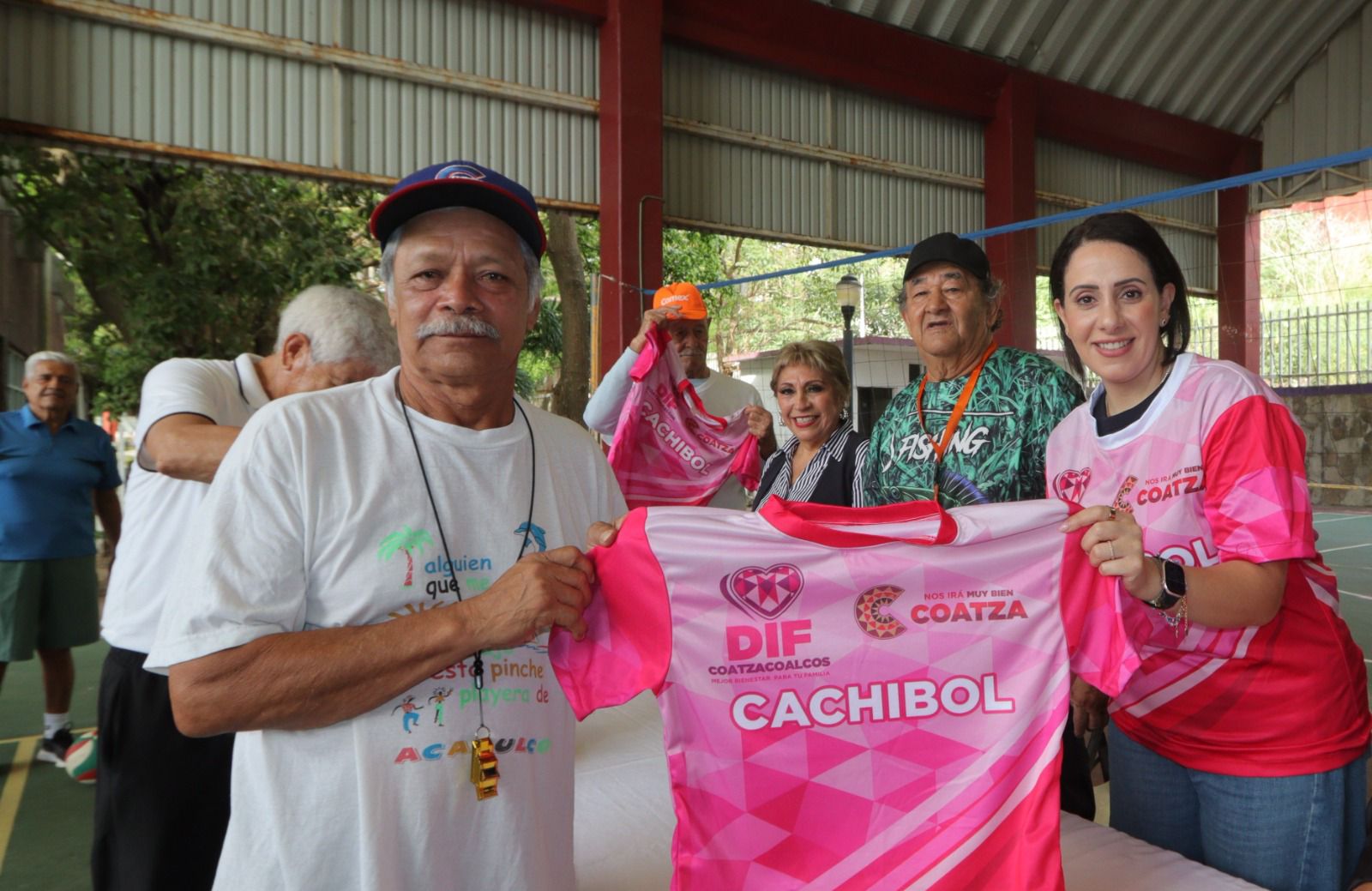 Este miércoles la presidenta del DIF Coatzacoalcos, Sonia Marie, visitó el Centro de Día del Adulto Mayor (CAM) para cumplir la promesa hecha a los integrantes de los equipos femenil y varonil de cachibol: entregar los uniformes deportivos que habían solicitado.