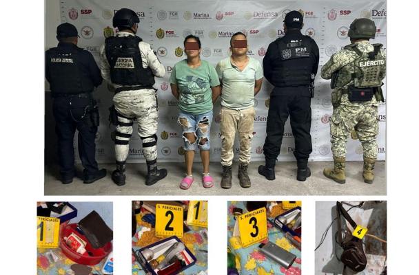 Durante el operativo fueron detenidos en flagrancia Julissa “N” por su presunta participación en el delito contra la salud y Fidel “N” por su presunta responsabilidad en los delitos contra las instituciones de seguridad pública y contra la salud.
