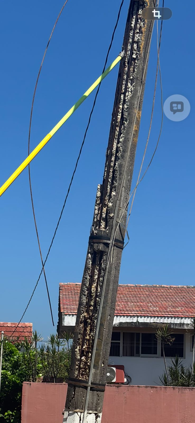 Los habitantes de la zona expresaron su preocupación, ya que esta infraestructura sostiene líneas de alta tensión, lo que representa un riesgo potencial para peatones, automovilistas y viviendas cercanas en caso de colapso del poste o caída de cables energizados.