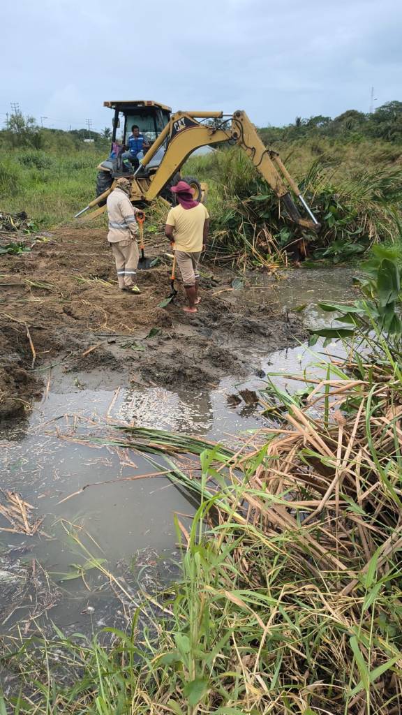 Coatzacoalcos, Ver., a 17 de marzo de 2026. Personal operativo de la Comisión Municipal de Agua Potable y Saneamiento (CMAS) se encuentra realizando trabajos de reparación en una fuga de agua detectada en la línea de 18 pulgadas, ubicada cerca del puente Calzadas II, sobre la carretera antigua a Minatitlán.