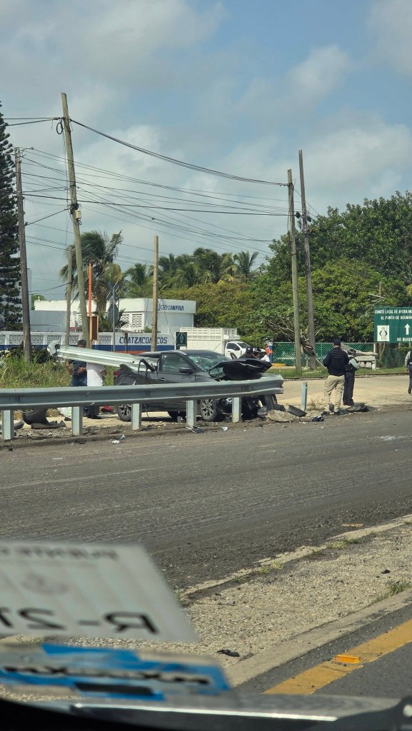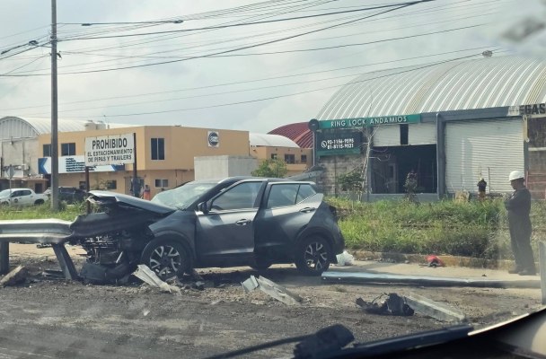 Coatzacoalcos, Ver.- Este inicio de semana, un joven de 22 años resultó con lesiones leves tras chocar su camioneta Nissan Kicks contra un muro de contención en la carretera Costera del Golfo, tramo Coatzacoalcos-Villahermosa, frente a la terminal marítima de Pajaritos y la bodega de CryoInfra.