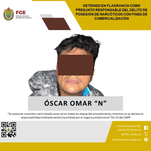 Xalapa, Ver., 26 de marzo de 2026. — En un operativo conjunto derivado de labores de inteligencia y trabajo de campo, la Fiscalía General del Estado de Veracruz, a través de la Policía Ministerial, en coordinación con la Secretaría de Seguridad Pública de Veracruz, logró la detención en flagrancia de Óscar Omar “N”, identificado como presunto operador clave de una célula delincuencial generadora de violencia en la región centro del estado.