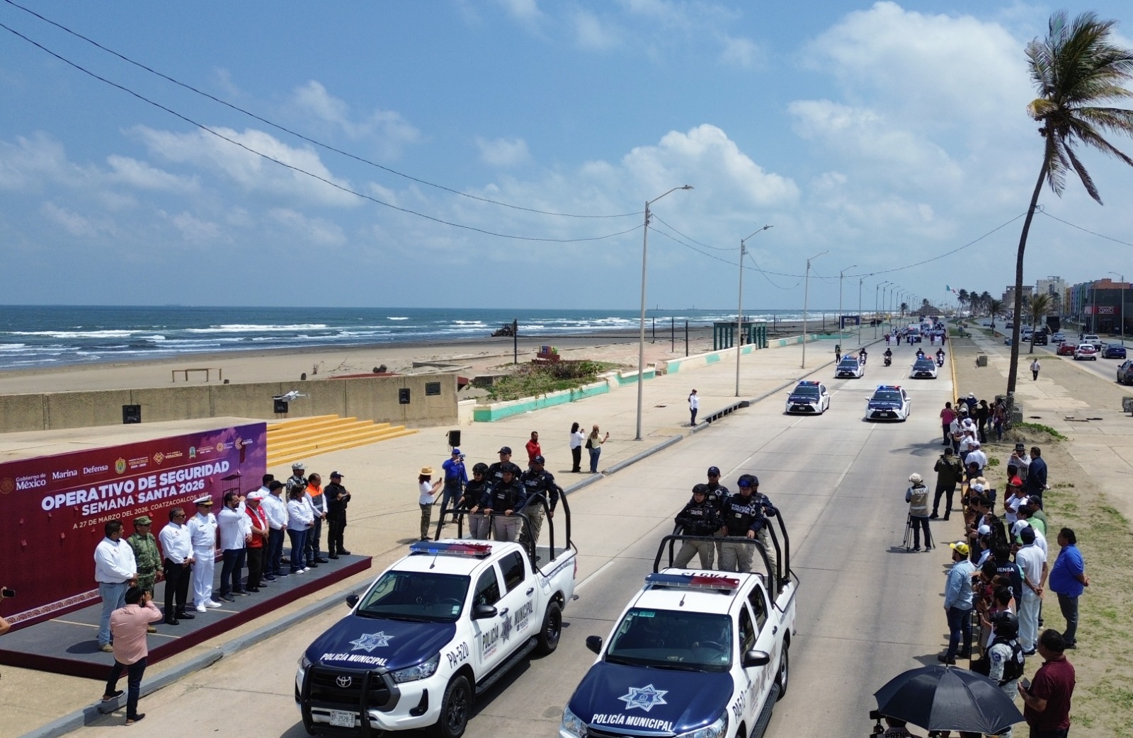 Coatzacoalcos, Ver., 27 de marzo de 2026.– Autoridades de los tres órdenes de gobierno dieron el banderazo de inicio al “Operativo de Semana Santa 2026”, que se desarrollará del 27 de marzo al 12 de abril en Coatzacoalcos, con la participación de 573 elementos de corporaciones federales, estatales y municipales, en un esfuerzo conjunto para garantizar la seguridad durante el periodo vacacional.