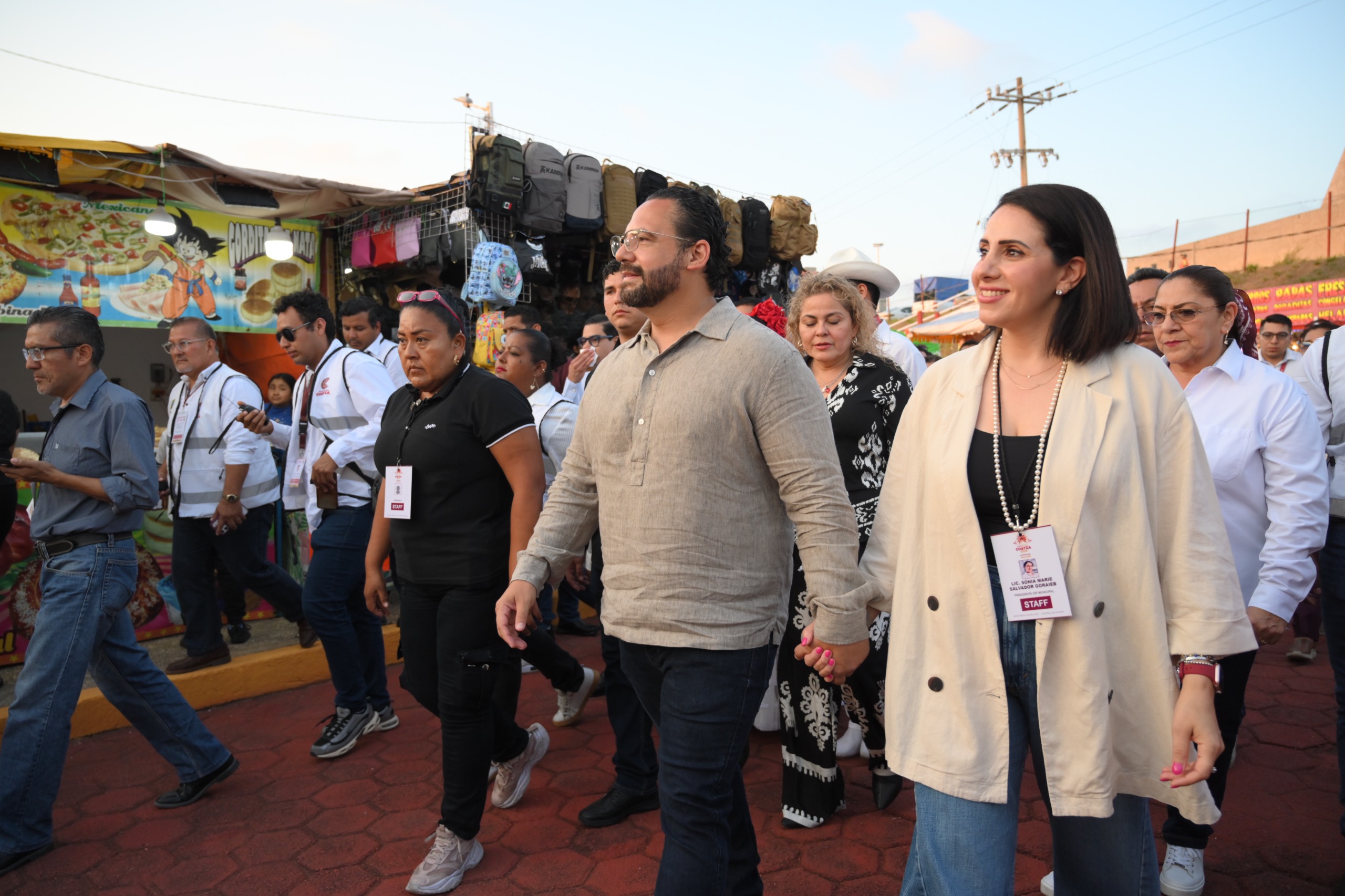 Junto a ellos, el secretario de Turismo, Igor Fidel Rojí López; el titular de Sedarpa, Rodrigo Calderón Salas; los diputados locales, Miguel Pintos Guillén e Ingrid Jeny Calderón Domínguez; ediles de Coatzacoalcos y funcionarios estatales, disfrutaron de las áreas comerciales, ganaderas y culturales que ofrece esta fiesta regional.