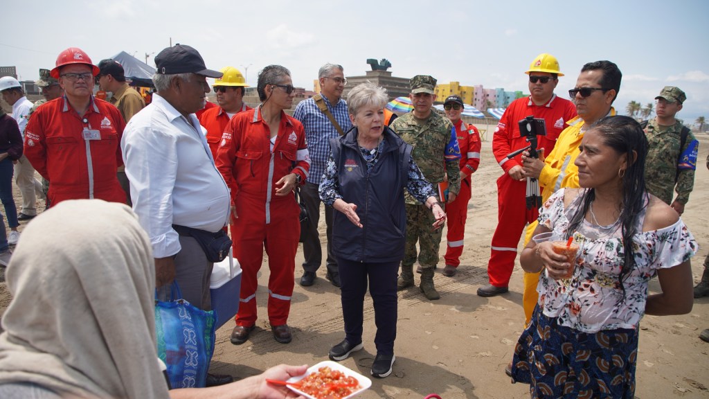 La titular de la Semarnat y los representantes del GI dialogaron con comunidades, prestadores de servicios y visitantes sobre las acciones realizadas en el territorio. Exhortaron a la población a reportar la presencia de hidrocarburo en las playas, de tal forma que puedan ser atendidas oportunamente.