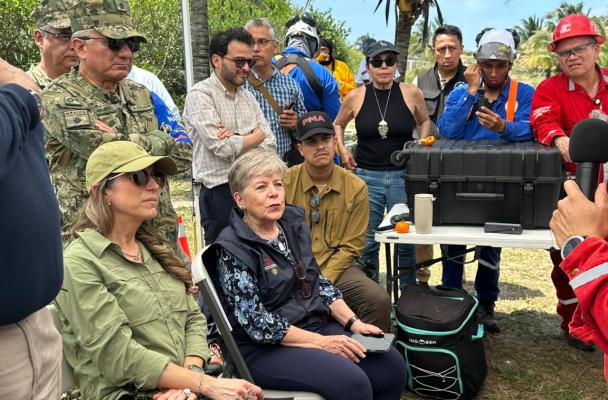 Secretaria Bárcena supervisa acciones de contención y limpieza de hidrocarburos en playas de Veracruz; sin afectaciones a ANPs, afirma