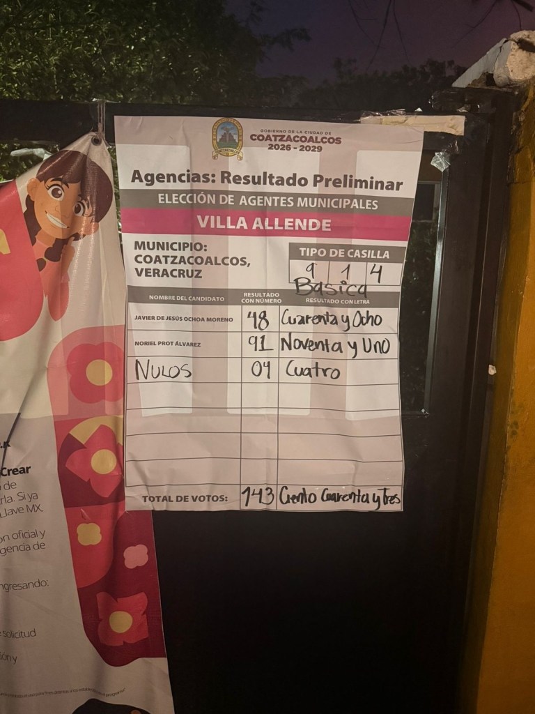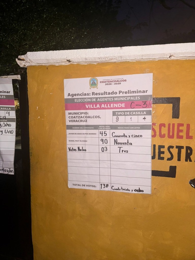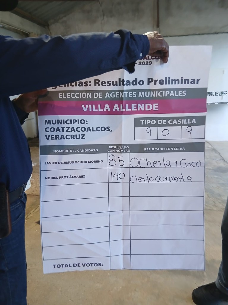 De acuerdo con los resultados, Noriel Prot obtuvo 3 mil 957 votos, superando a su contrincante Ochoa, quien alcanzó 2 mil 228 sufragios.