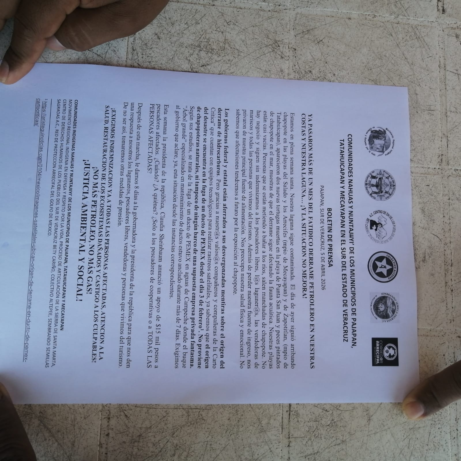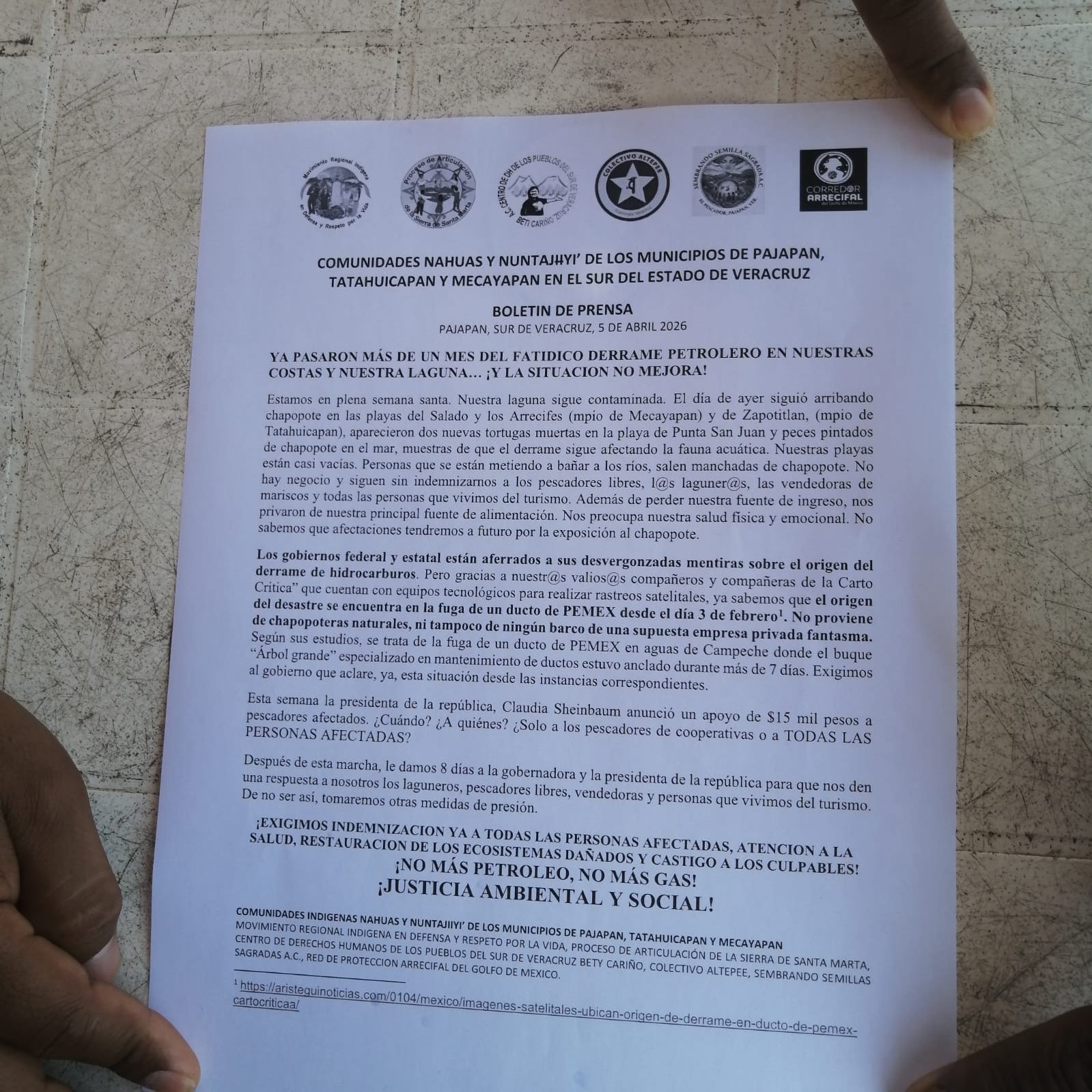 Los organizadores han señalado que esta movilización surge ante la falta de respuestas claras y acciones efectivas por parte de las autoridades frente a los daños ocasionados por la contaminación petrolera, la cual afirman continúa afectando gravemente a especies marinas, manglares y medios de subsistencia de las familias de la zona.