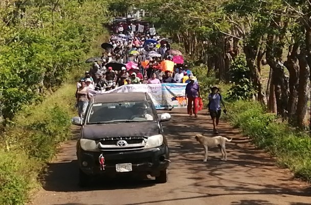 De acuerdo con la convocatoria, el punto de reunión fue a las 8:00 de la mañana en el domo central del municipio de Pajapan, desde donde partió el contingente a las 9:00 horas.