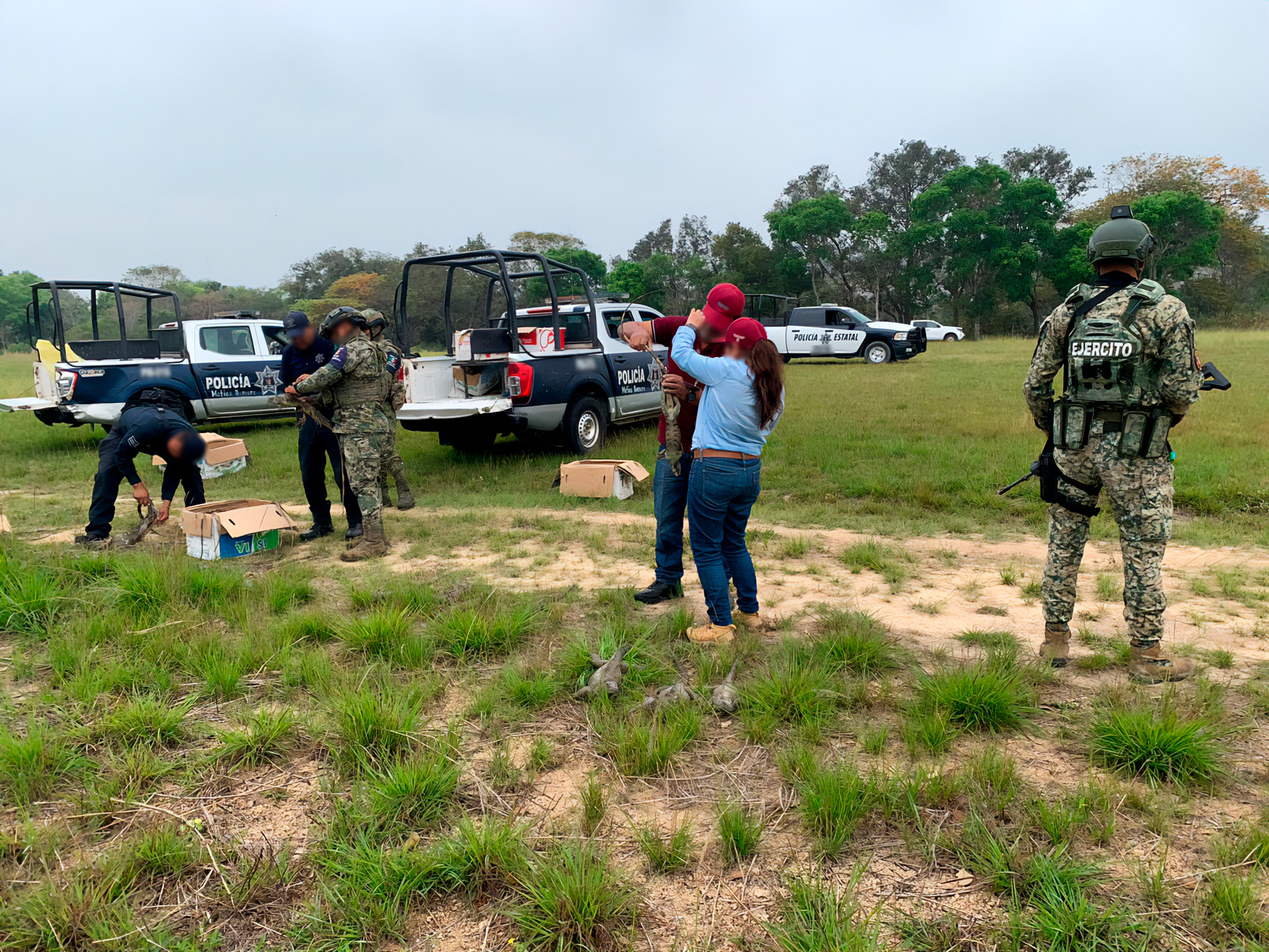 Derivado de lo anterior, y con el objetivo de garantizar su bienestar, se determinó su liberación inmediata en un sitio con condiciones adecuadas de hábitat, ubicado en un ecosistema de selva baja caducifolia, donde los ejemplares pueden encontrar alimento y refugio. La liberación se realizó en coordinación con elementos de la Secretaría de la Defensa Nacional, Secretaría de Marina y Policía Estatal.