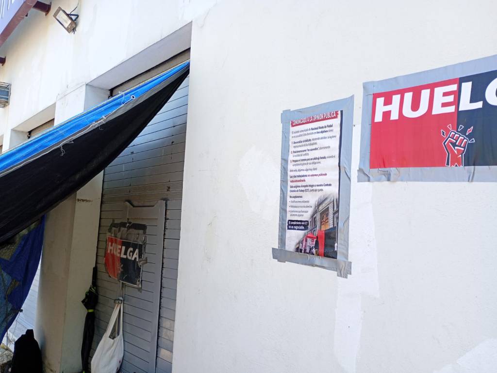 A nivel nacional, las banderas rojo-negra ondean en todas las sucursales, con lonas, carteles de protesta y tiendas de campaña instaladas por los huelguistas.