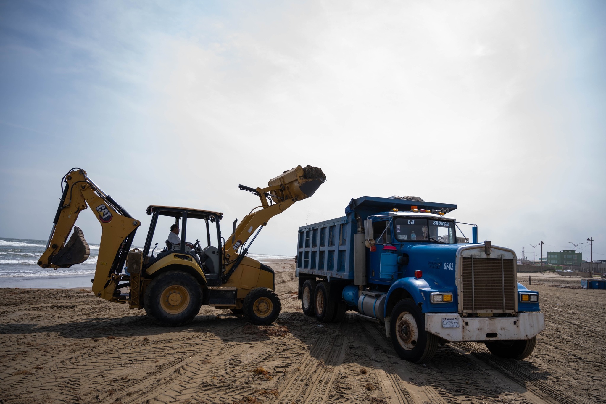 Coatzacoalcos, Ver., 13 de abril de 2026.- El Gobierno de Coatzacoalcos, a través de la Subdirección de Maquinaria Pesada, mantiene labores intensivas de limpieza en la zona costera de la ciudad, como parte de las acciones de saneamiento ante el arribo masivo de sargazo, cuya descomposición genera gases tóxicos y afecta el ecosistema marino.