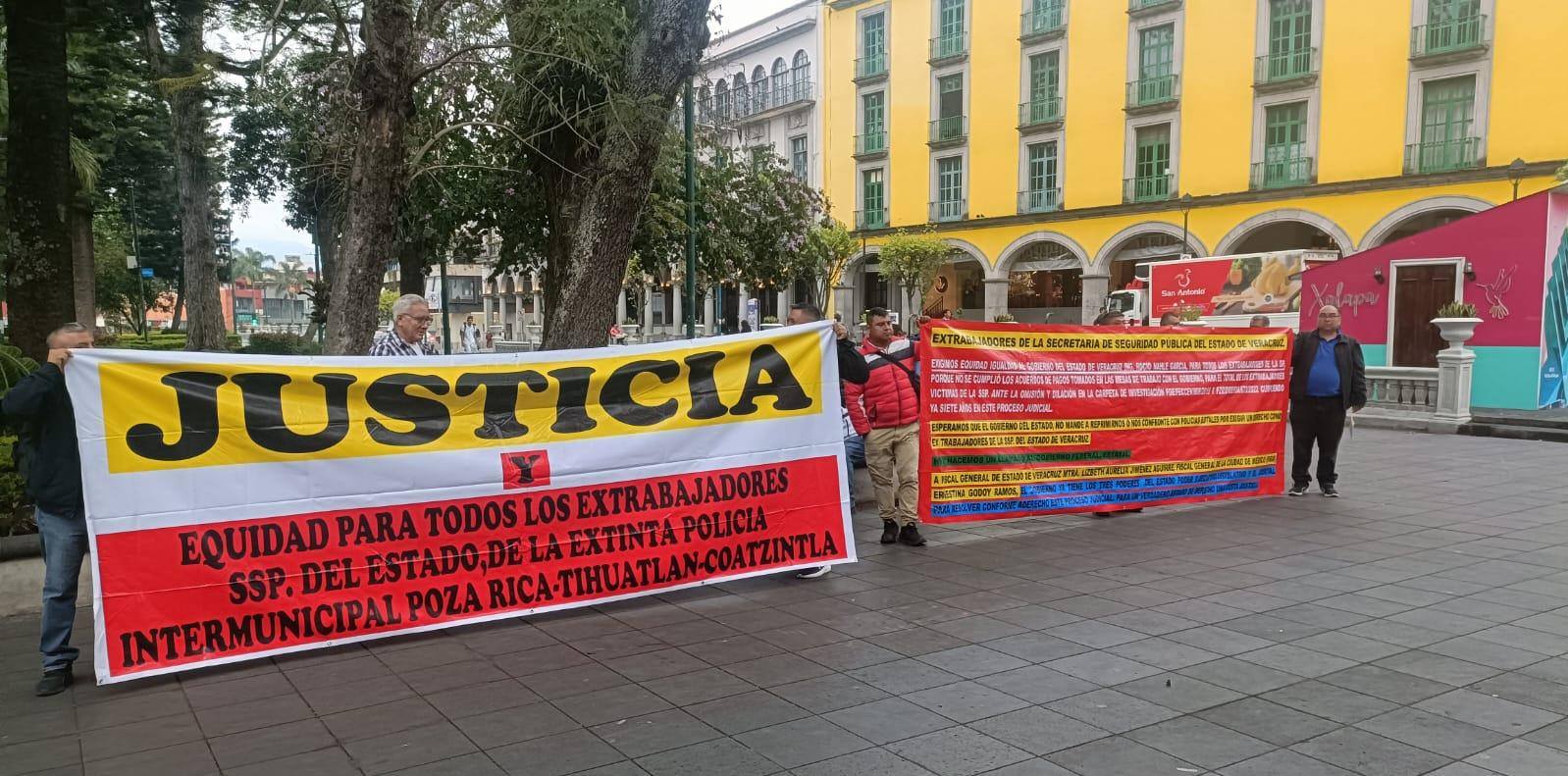Extrabajadores de la extinta Policía Intermunicipal Poza Rica-Tihuatlán- Coatzintla, cerraron el centro de la capital veracruzana, en exigencia de que ya les paguen al resto de sus compañeros o a los familiares de quienes lamentablemente ya murieron.