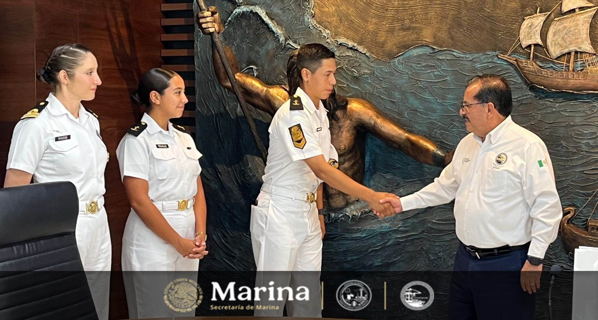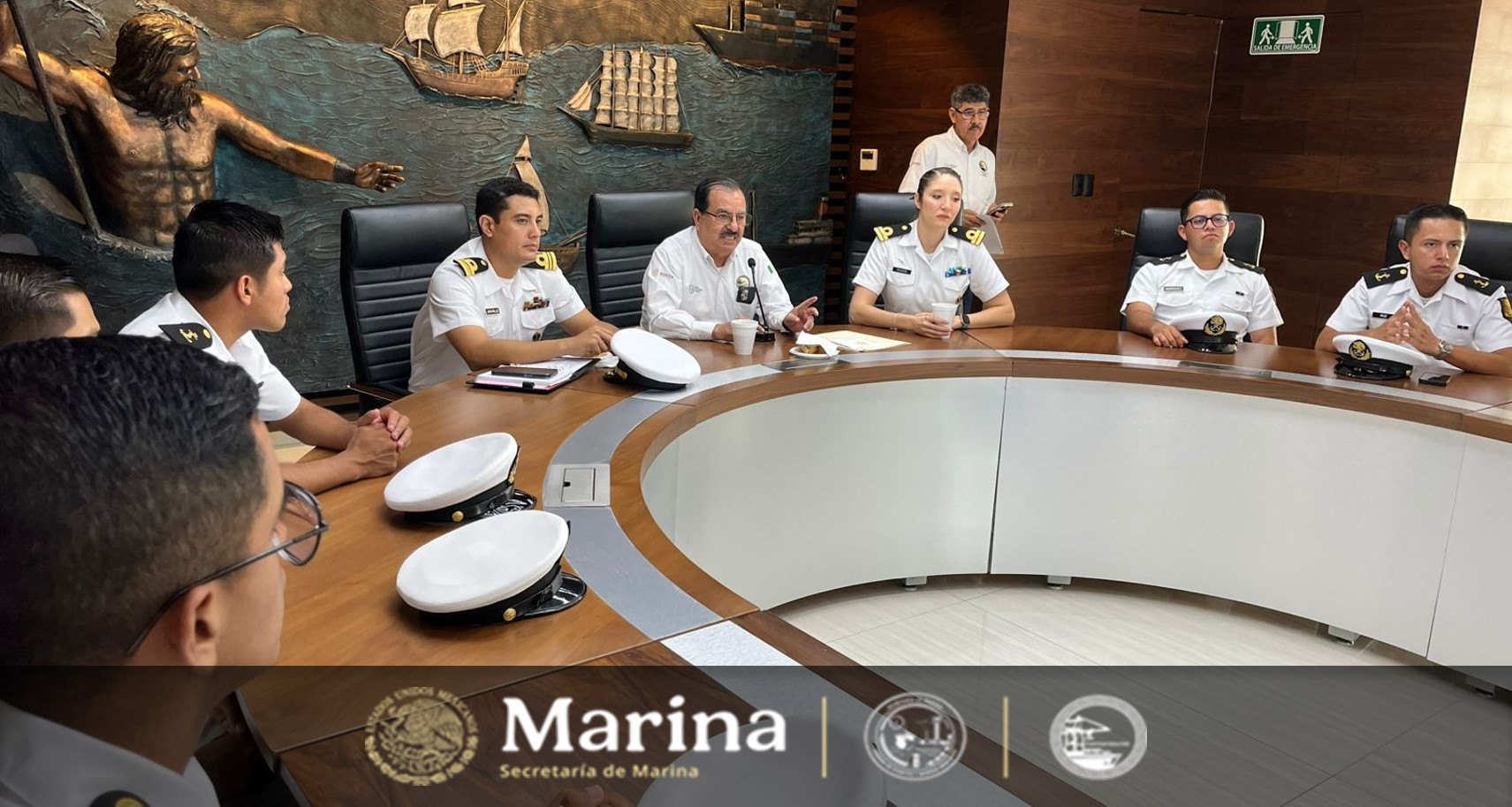 El vicealmirante Martín Zepeda Anguiano, director general de ASIPONA Coatzacoalcos S.A. de C.V., recibió a los 113 cadetes masculinos y 40 femeninos en la sala de juntas de la dependencia.