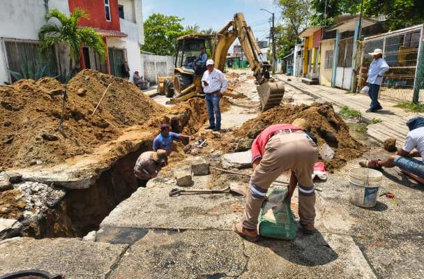 -Sustituyen 36 metros de tubería sanitaria y reparan más de 10 descargas en la calle Avestruces, mejorando el sistema de drenaje tras años de rezago.
