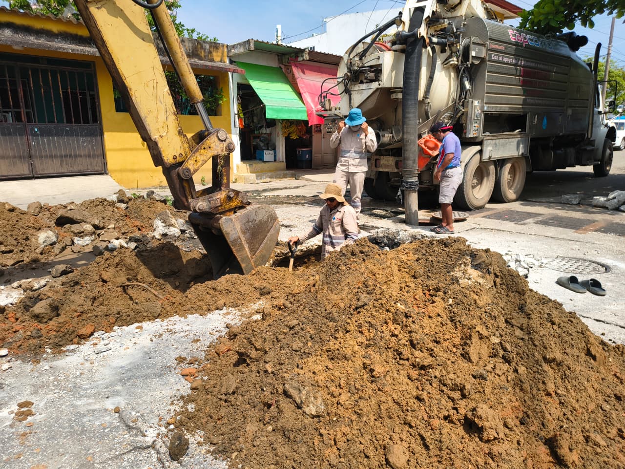 Como parte de las acciones, se realiza la sustitución de 36 metros lineales de tubería de 8 pulgadas y la reparación de más de 10 descargas sanitarias, lo que permitirá mejorar significativamente el funcionamiento del sistema sanitario en la zona.