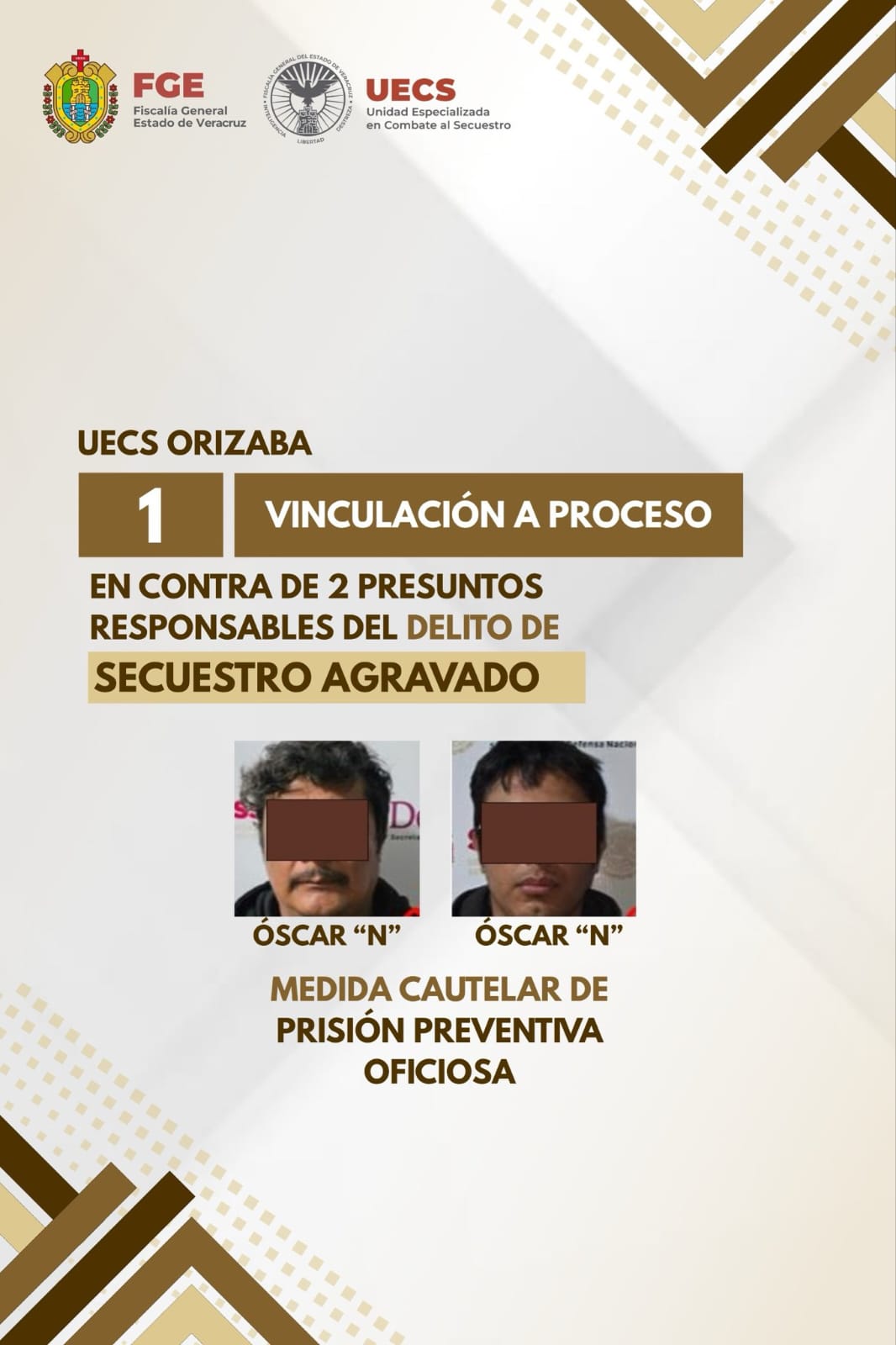 Fueron agentes de la Unidad Especializada en Combate al Secuestro y la Extorsión, quienes llevaron a cabo una incursión en el municipio de Río Blanco, en la zona montañosa central de Veracruz, donde lograron detener a Óscar «N» y Óscar «N», padre e hijo.