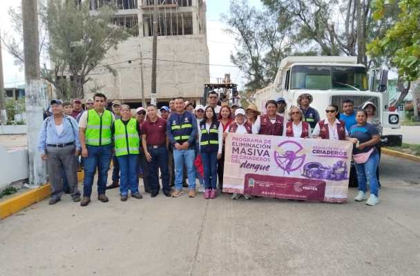 Coatzacoalcos, Ver., 20 de abril de 2026.- En la Primera Jornada de Eliminación de Criaderos realizada en Villa Allende, el Gobierno de Coatzacoalcos logró la eliminación de 94 toneladas de depósitos propicios para la proliferación del vector, reduciendo significativamente los riesgos sanitarios para las familias de este sector.
