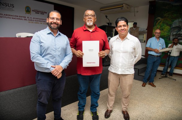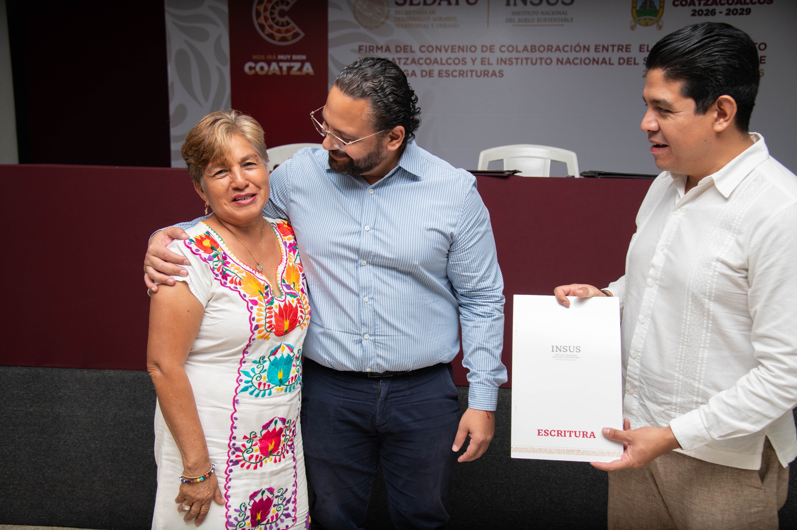 Avanza Coatzacoalcos en ordenamiento: alcalde e INSUS firman convenio y entregan escrituras a 31 familias