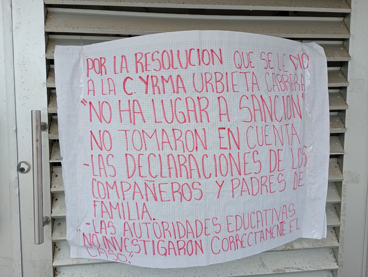 Por su parte, la maestra Urbieta Cabrera se presentó en la escuela para asumir su cargo, pero le fue negado el acceso debido a la toma.