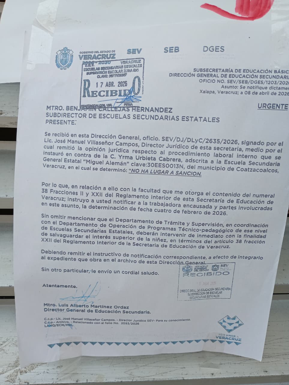 La protesta inició el miércoles 22 de abril, en repudio a una resolución de la Secretaría de Educación de Veracruz (SEV) que ordena la reinstalación de la subdirectora Yrma Urbieta Cabrera. Más de mil estudiantes de secundaria y media superior resultan afectados por el cierre indefinido del plantel.