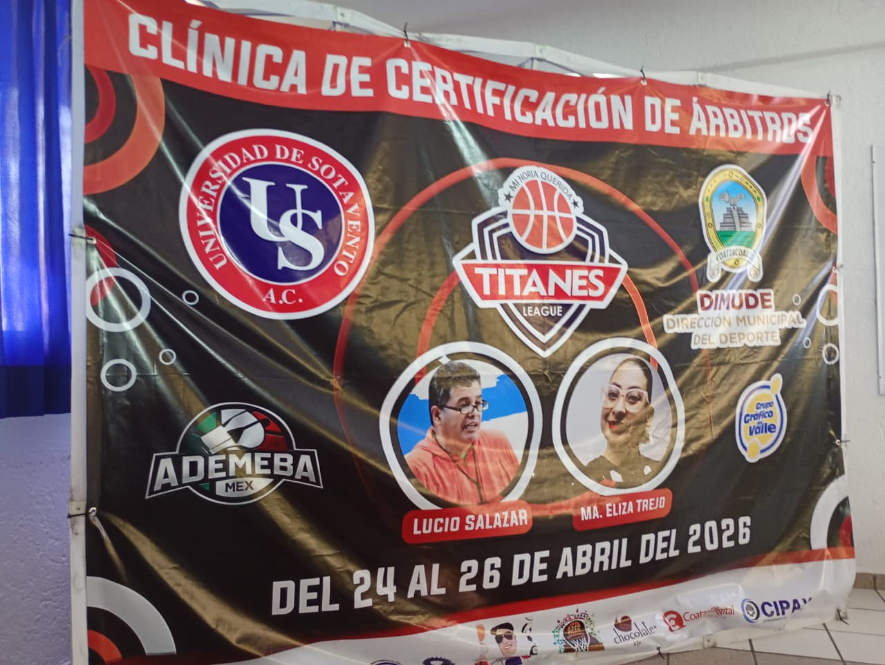 La clínica, que se imparte del 24 al 26 de abril de 2026 en los salones de capacitación y canchas deportivas de la Universidad de Sotavento, es dirigida por el exárbitro profesional e instructor Lucio Salazar Sánchez, con credenciales de la Federación Internacional de Baloncesto (FIBA) y ADEMEBA.