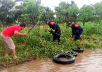 El Río Agua Dulcita en Agua Dulce se desbordó por la depresión tropical 11-E que afecta a toda la zona sur del estado de Veracruz con…